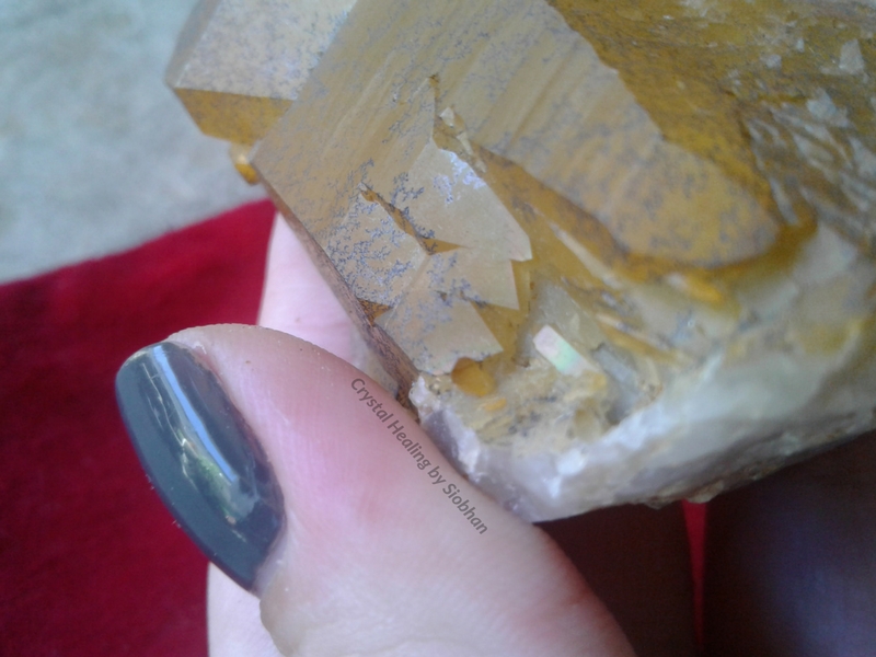 I thought I’d show you the Tangerine Quartz I have with a slight aura coating here and there. It’s difficult to photograph but I hope you can see. This crystal always makes me feel positive and upbeat if I look at it or hold it. It was a bargain box score I got from Gaia Crystals ages ago! I also like to say it’s good for sexual energy as it’s shaped like a penis BUT that’s a story for another day 😉